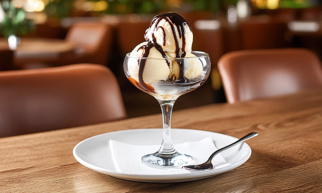 • Je geniet bijvoorbeeld van kaaskroketten als voorgerecht, gepaneerde visfilet als hoofdgerecht en een dame blanche na