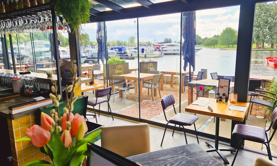 Geniet van een verrukkelijke 2- of 3-gangen keuzelunch bij Brasserie Dock 19: proef de lekkerste gerechten met schitterend uitzicht over het water en de bootjes aan de IJssel