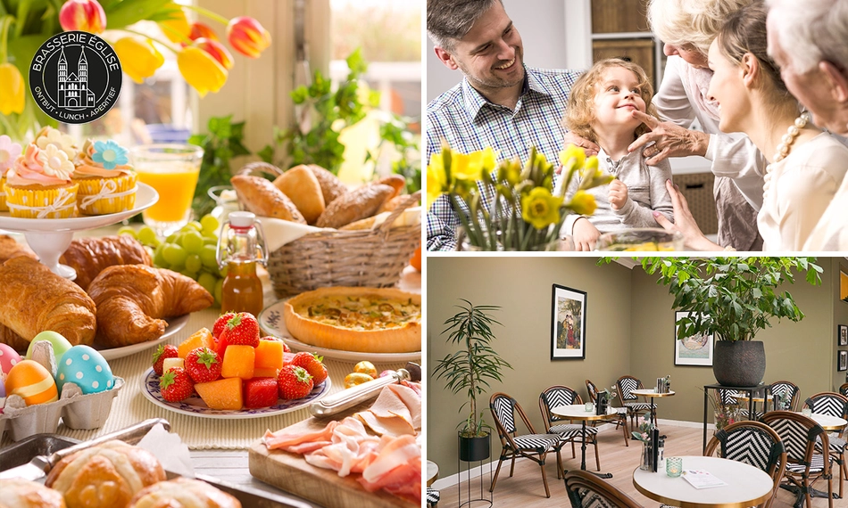 Vier Pasen goed met een 6-gangen paasontbijt inclusief verse jus d'orange of prosecco bij Brasserie Église: of ga voor een 3-gangen paaslunch met welkomstdrankje, heerlijke aspergesoep, zalige zalmfilet en meer