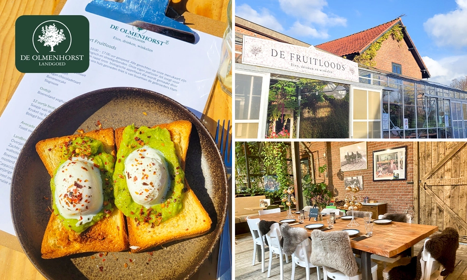 Geniet van een overheerlijke 2-gangenlunch à la carte bij De Fruitloods van Landgoed de Olmenhorst: proef de smaak van biologische en lokale ingrediënten
