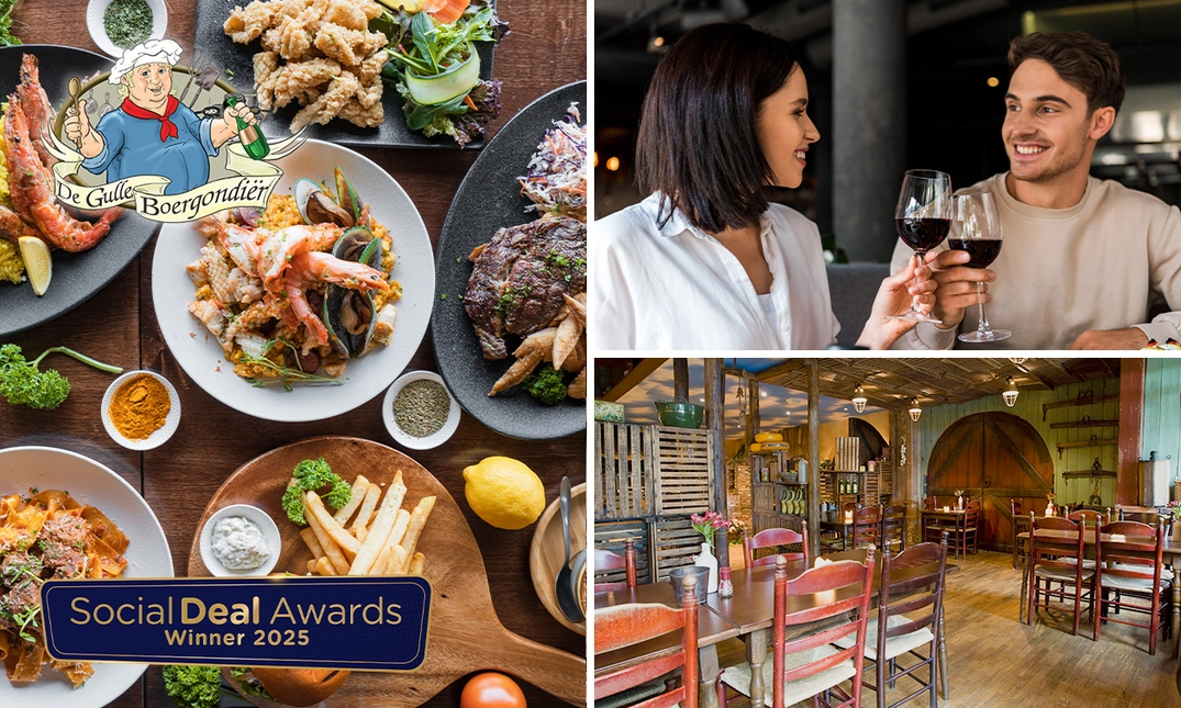 Kom onbegrensd genieten bij De Gulle Boergondiër! Je mag 2 uur lang genieten van zo veel gerechten als je zelf wilt. Voordat je aan het buffet begint krijg je ook nog een schaal met overheerlijke boerenlekkernijen op tafel geserveerd. Zoals De Gulle Boergondiër het zelf zou zeggen: "Gij zult genieten!"