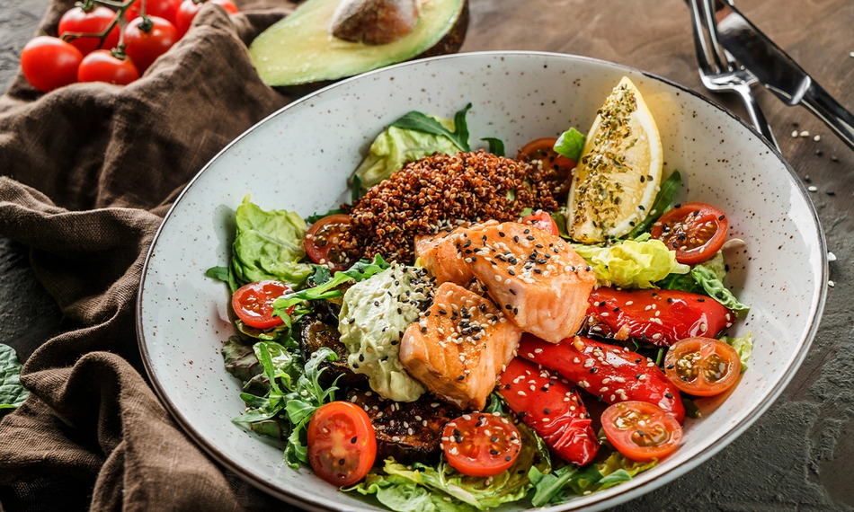 Alle salades worden geserveerd met brood, boter en vinaigrette