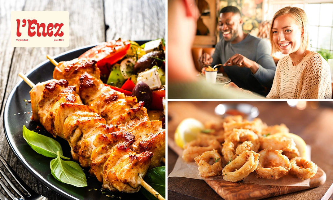 Pénétrez chez Enez Grill et voyagez au cœur de la Turquie avec un menu en 3 services à la carte. Découvrez des saveurs et des recettes authentiques qui sauront vous guider à travers une véritable expérience culinaire. Dans un cadre cosy et plein de charme, partagez un moment de plaisir en famille ou entre ami(e)s avec des mets élaborés à partir de produits frais. Entre spécialités turques et grillades, chaque plat est une invitation au voyage et à la découverte !