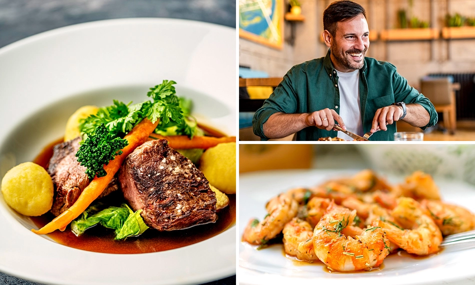 bij 2 gangen kies je een voor- en hoofdgerecht