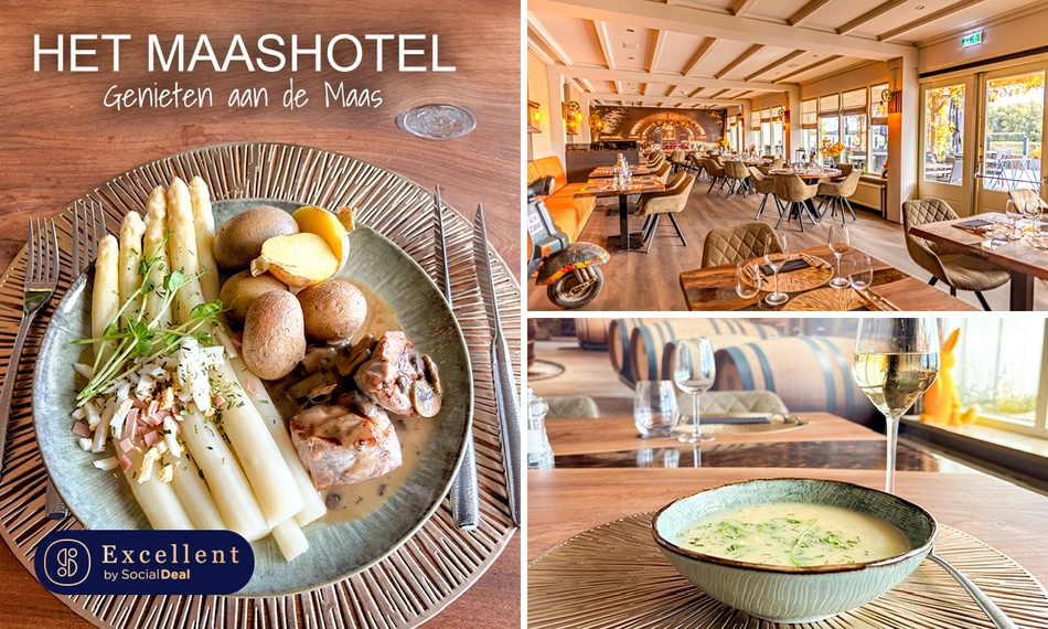 Het aspergeseizoen is weer aangebroken! Geniet volop van het witte goud met een 3-gangen aspergediner bij Het Maashotel. Proef de authentieke smaakcombinaties en laat je smaakpapillen verwennen met verrukkelijke, versbereide gerechten. Je sluit af met een heerlijke coupe van verse Limburgse aardbeien met slagroom. Het restaurant is sfeervol ingericht en heeft prachtig uitzicht over de Maas. Perfect voor een romantische avond met je geliefde of met het gezin!