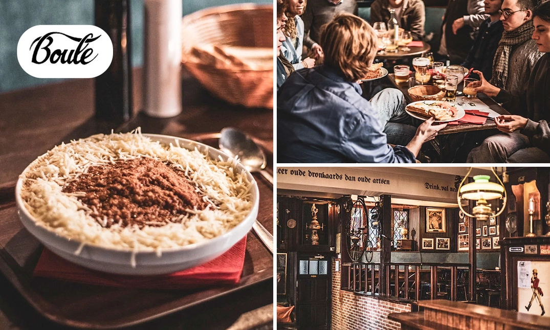 Uitgebreid dineren en borrelen tot in de late uurtjes: dat kan bij In Den Boule in Leuven. Bij dit gezellige café is iedereen welkom voor een zalige avond uit. Op de menukaart vind je een ruim aanbod aan klassieke pasta's, croques en huisgemaakte kroketten, maar ook voor bagels ben je aan het goede adres! Een bijpassend wijntje of biertje maakt je avond compleet. Ben je uitgegeten? Blijf dan gerust plakken, de avond is nog jong!
