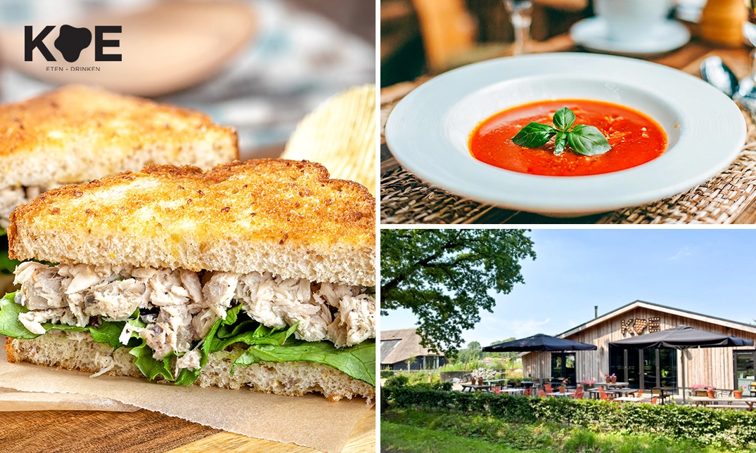Op vrijdag, zaterdag en zondag kun je ook als wandelaar, fietser of avontuurlijke ruiter terecht voor een heerlijk ontbijt, lunch of borrel. Of je nu neerstrijkt op het zonnige terras of in de sfeervolle loungehoek met houtkachel, bij KOE ben je altijd welkom!