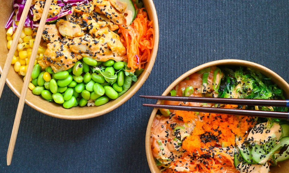 Geniet van een versbereide pokébowl voor afhaal bij Restaurant IZU: inclusief 8 heerlijke miniloempia's