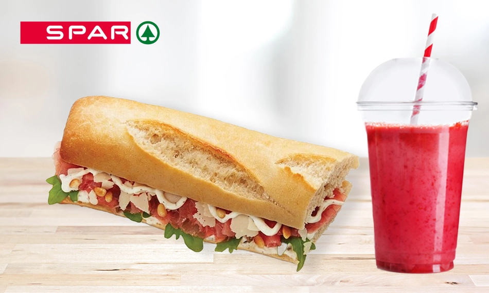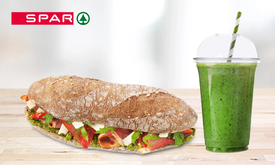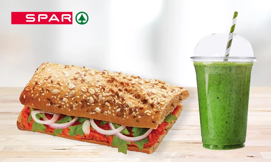 Smul van een heerlijk versbelegd broodje of focaccia naar keuze, af te halen bij Spar City Oude Vismarkt, Lübeckplein of Leeuwarden: inclusief een verse smoothie naar keuze om je ontbijt of lunch compleet te maken