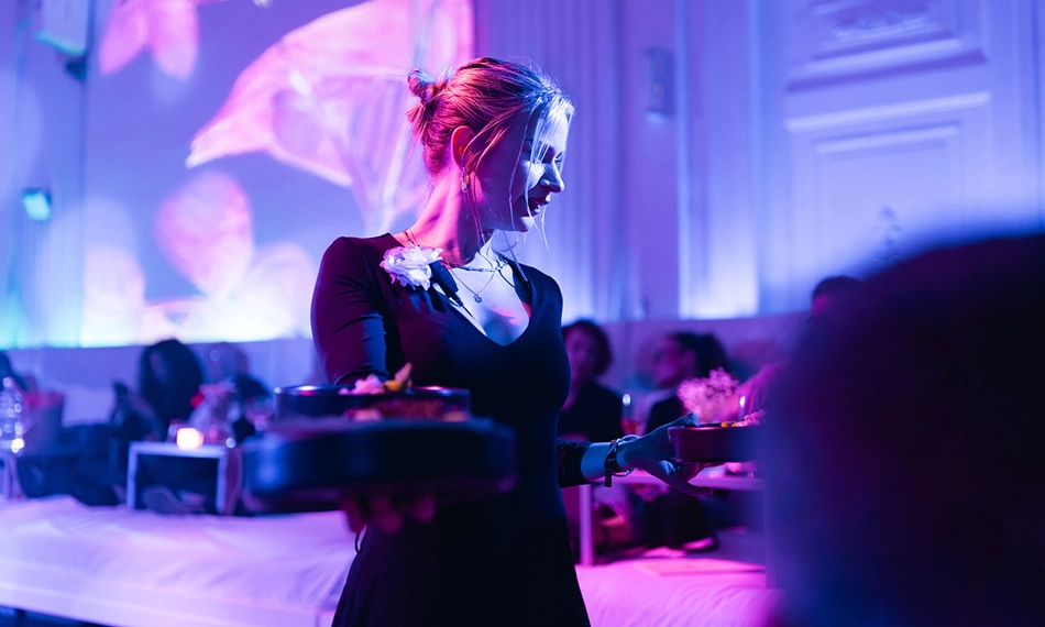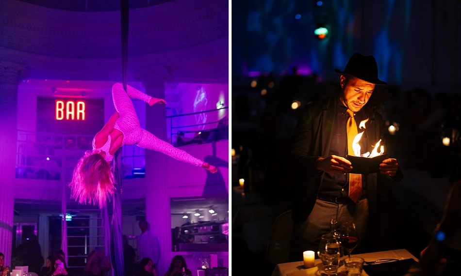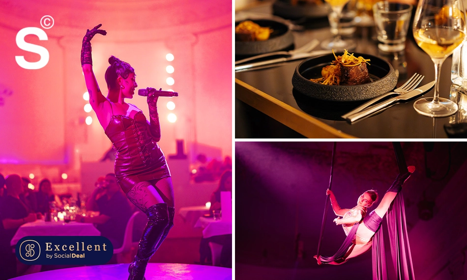 Terwijl je je ogen uitkijkt, bereidt het team van ervaren chef-koks een heerlijk geïnspireerd 4- of 6-gangendiner dat tijdens de show voor jou op tafel wordt gezet. Geniet van de show en het diner tijdens de Midnight Masquerade!